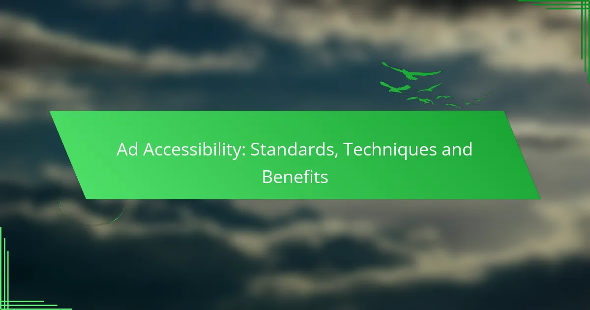 Ad accessibility is crucial for ensuring that all users, including those with disabilities, can interact with online content effectively. By adhering to established standards such as the Web Content Accessibility Guidelines (WCAG) and implementing techniques like descriptive alt text and keyboard navigation, advertisers can create inclusive digital experiences. This not only broadens audience reach but also enhances user satisfaction and strengthens brand loyalty.